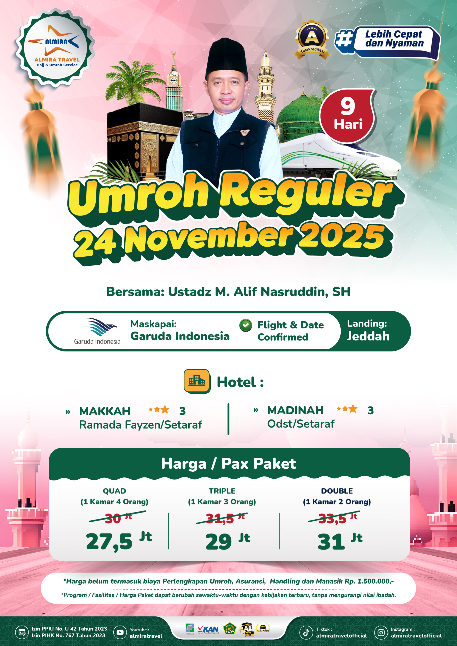 PT. Almira Berkah Abadi merupakan Travel Umroh yang telah memiliki izin resmi sebagai Penyelenggara Perjalanan Ibadah Umroh (PPIU) dari Kementerian Agama RI dengan