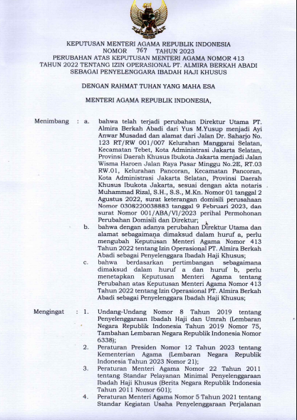 Almira Travel merupakan Travel Umroh yang telah memiliki izin resmi sebagai Penyelenggara Perjalanan Ibadah Umroh (PPIU) dari Kementerian Agama RI dengan